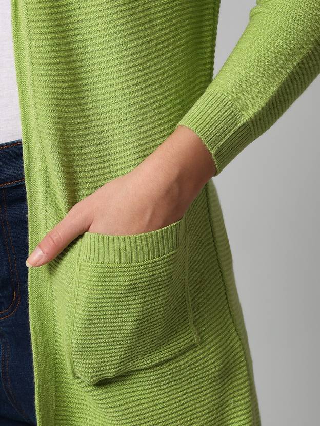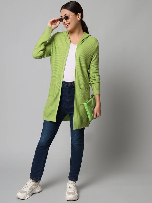 Broowl Women Full Sleeve Light Green Shrug