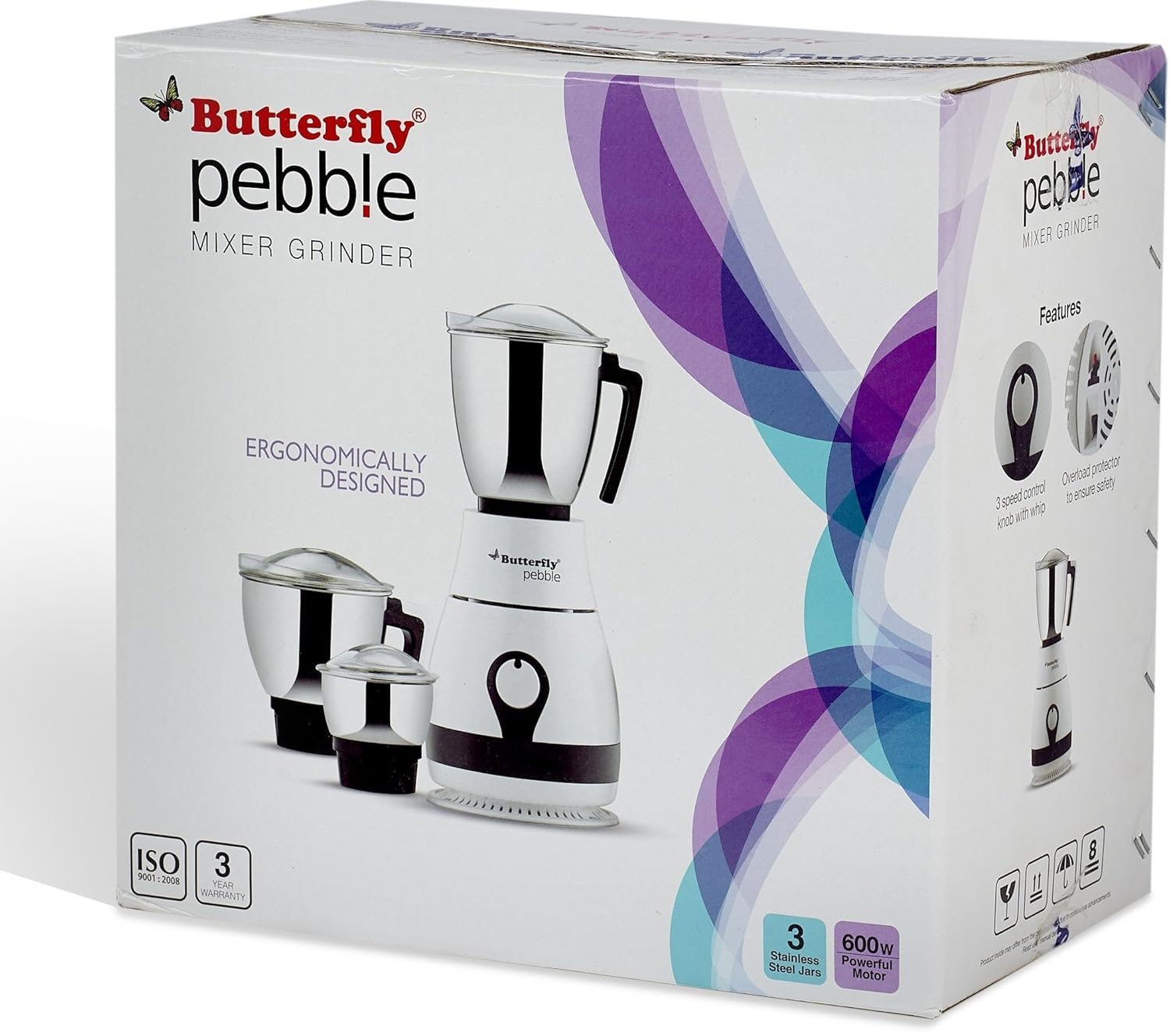 Butterfly Pebble 600-Watt Mixer Grinder with 3 Jars (Pink)