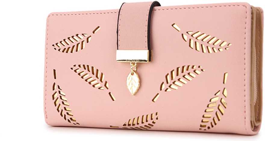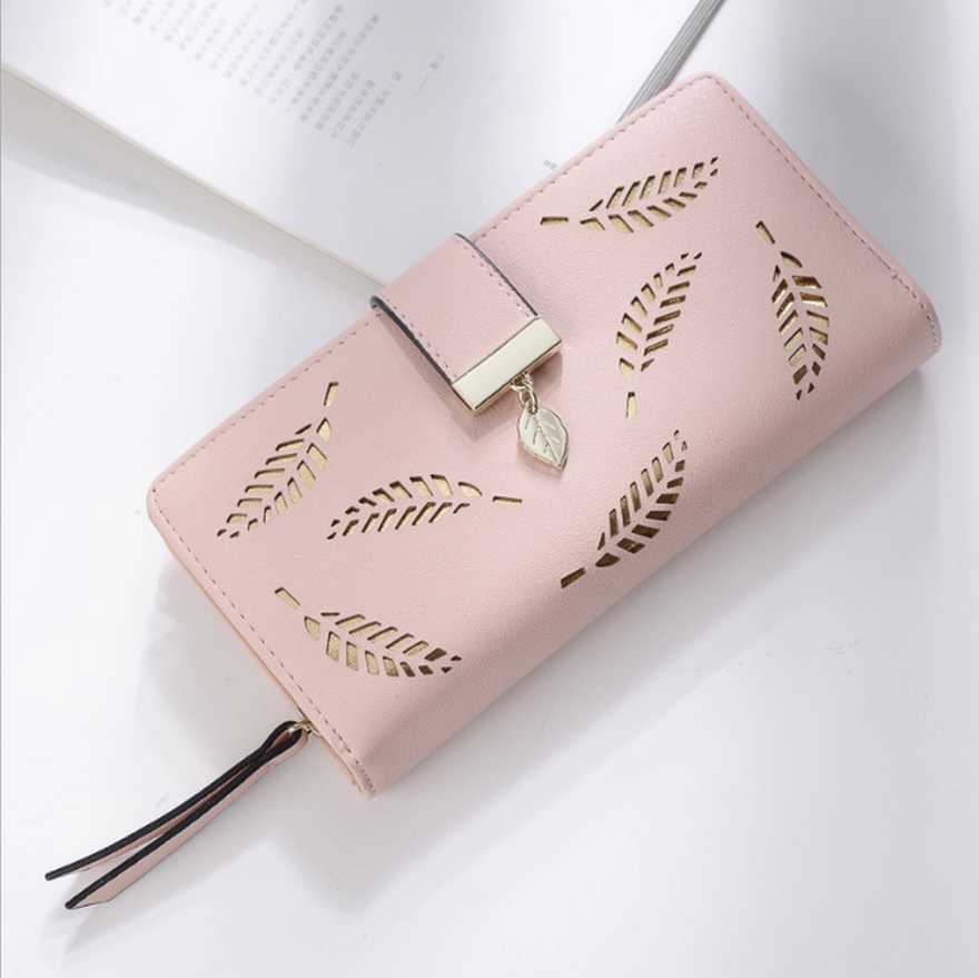 Model Name: Women's Long Leaf Pattern Bifold Card Holder Purse Zipper Buckle Elegant Clutch Wallet