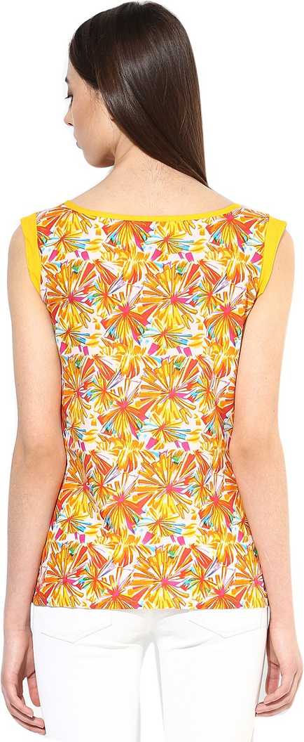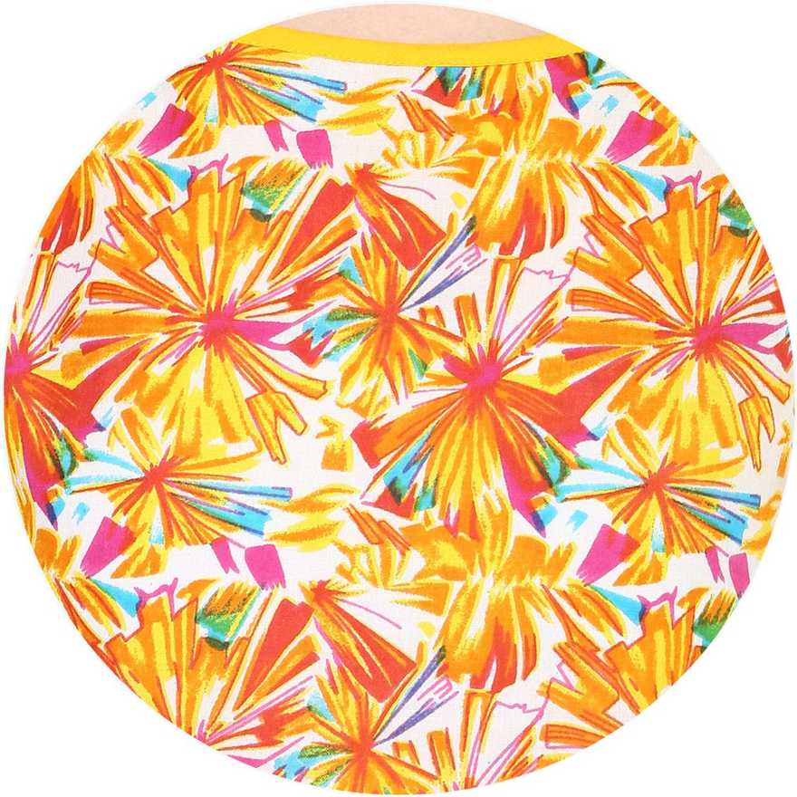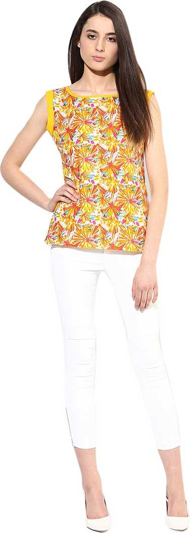 Straight fit short kurti with contrast coloured taping around the neckline,yellow hemline and deep armholes.Kurti length 22 Inches |