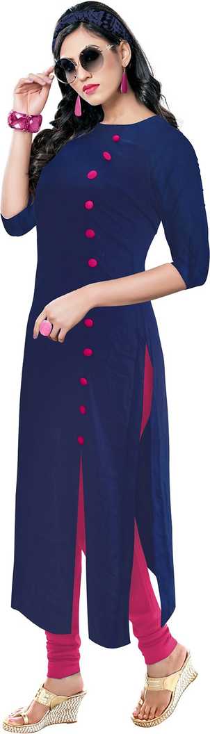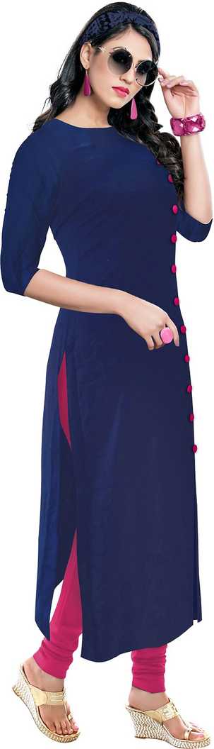 Color : Blue, Neck type : Round Neck, Sleeve Type : 3/4th Sleeve, Work Type : Solid/Plain |