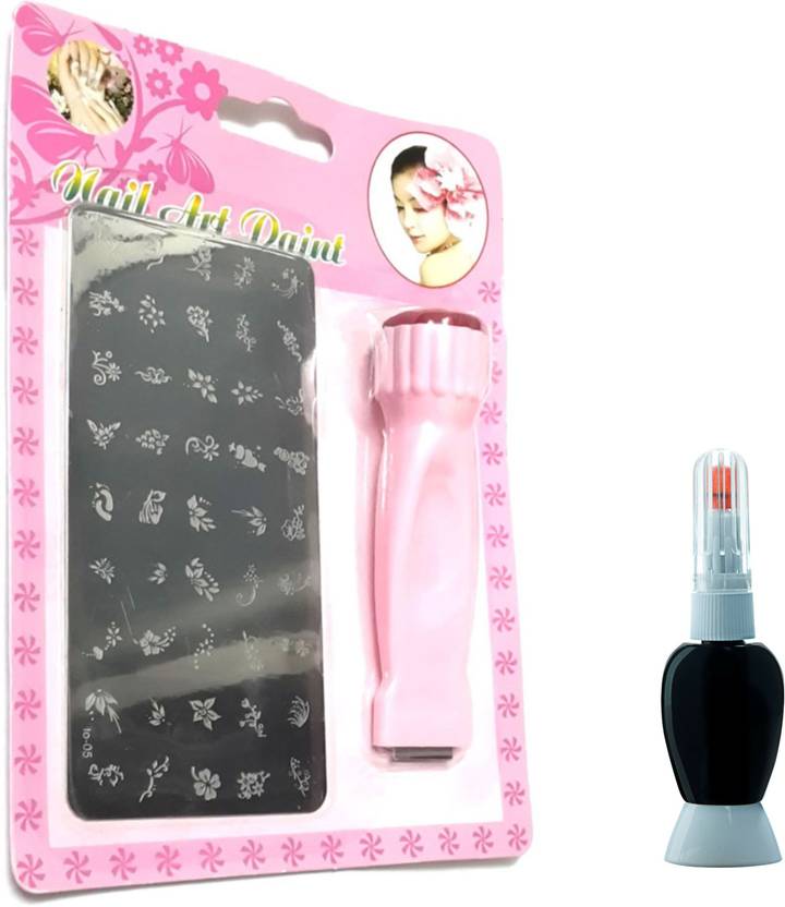 Iris 7 NAIL ART STAMP KIT WITH BLACK NAIL POLISH (Black)