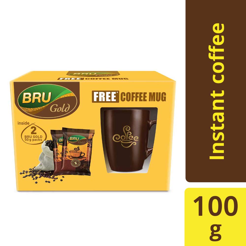 Bru Gold Instant Coffee Pouch, 100 g with Free Coffee Mug