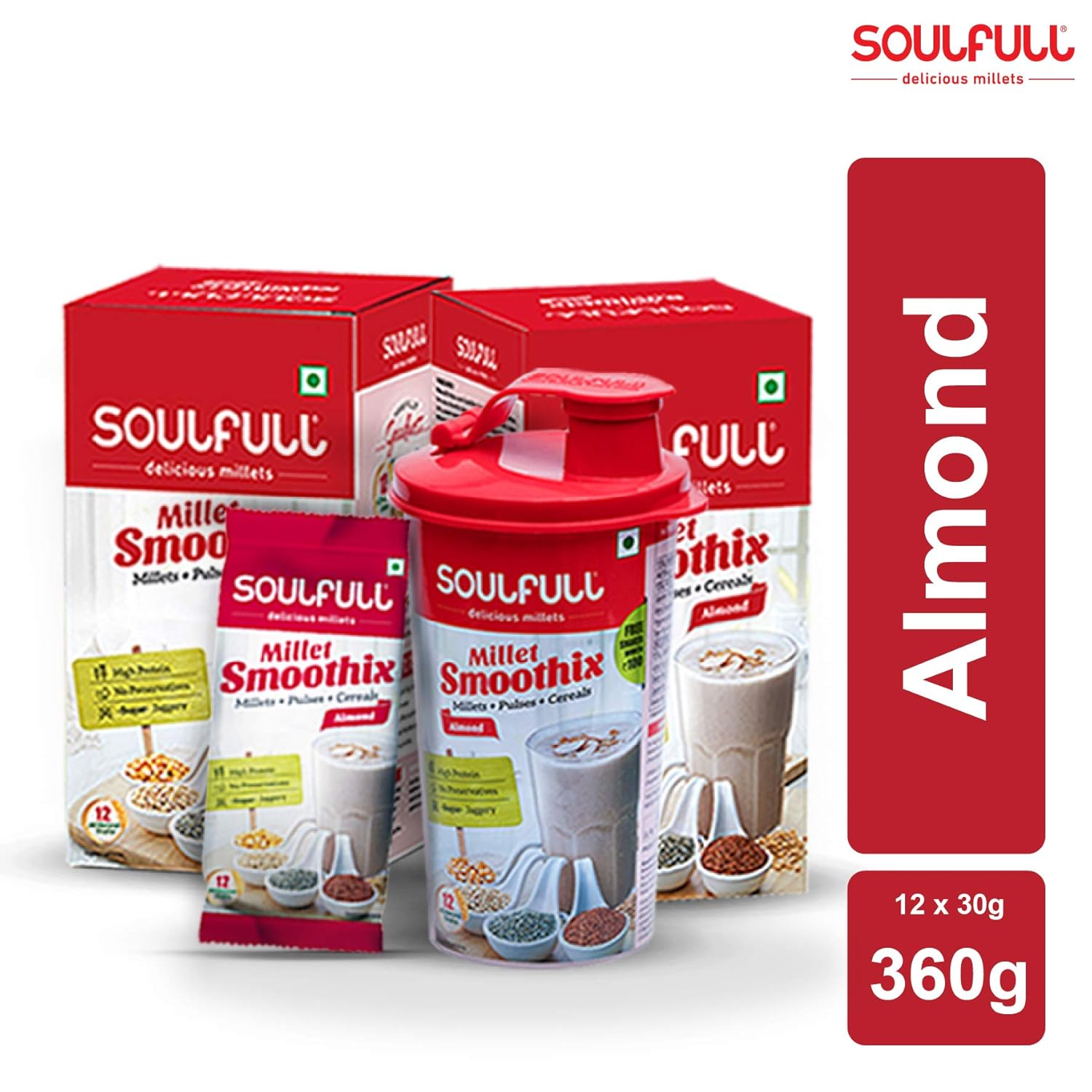 Soulfull Millet Smoothix- Almond Protein Drink, 12 Sachets| Free Shaker