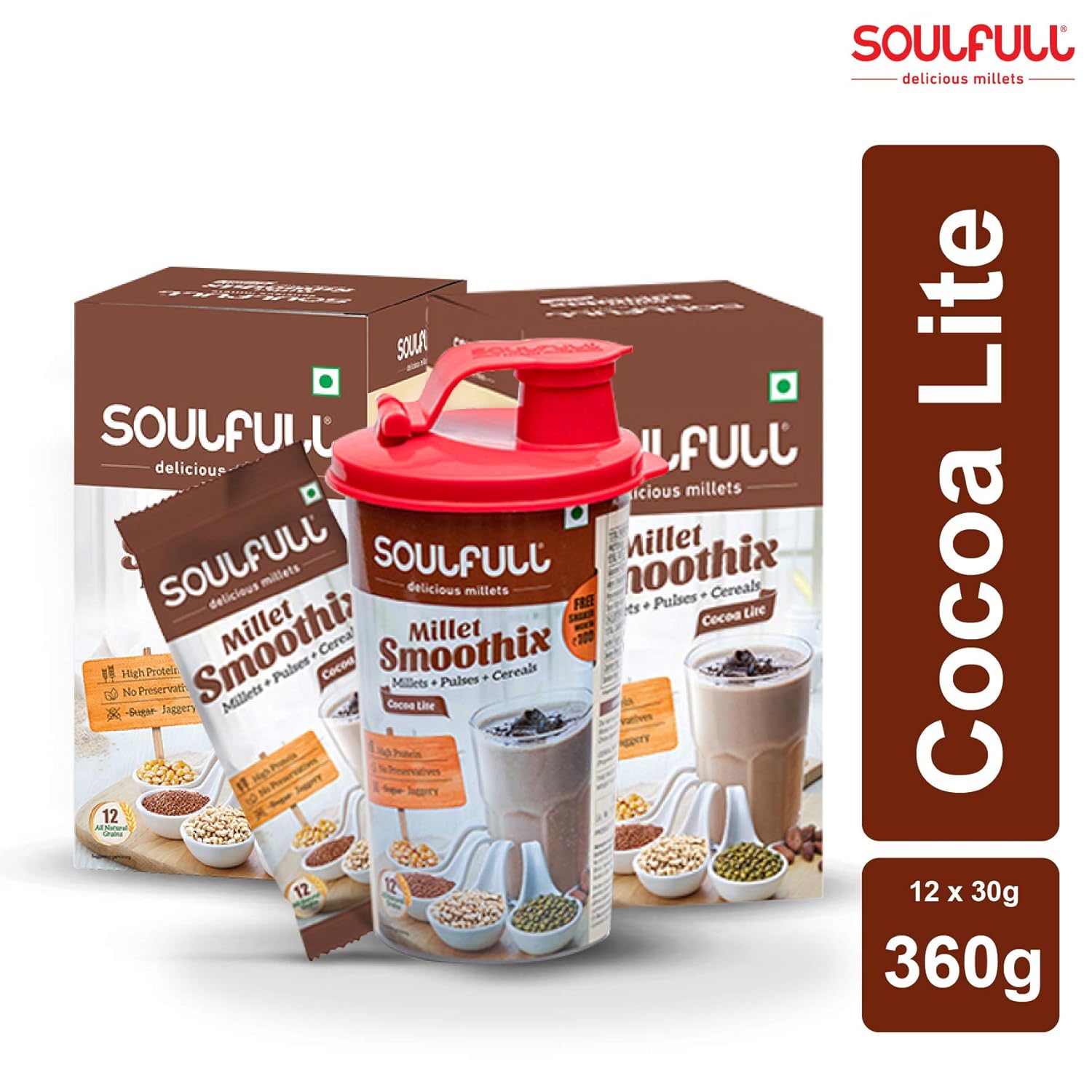 Soulfull Millet Smoothix- Cocoa Lite Protein Drink, 12 Sachets| Free Shaker