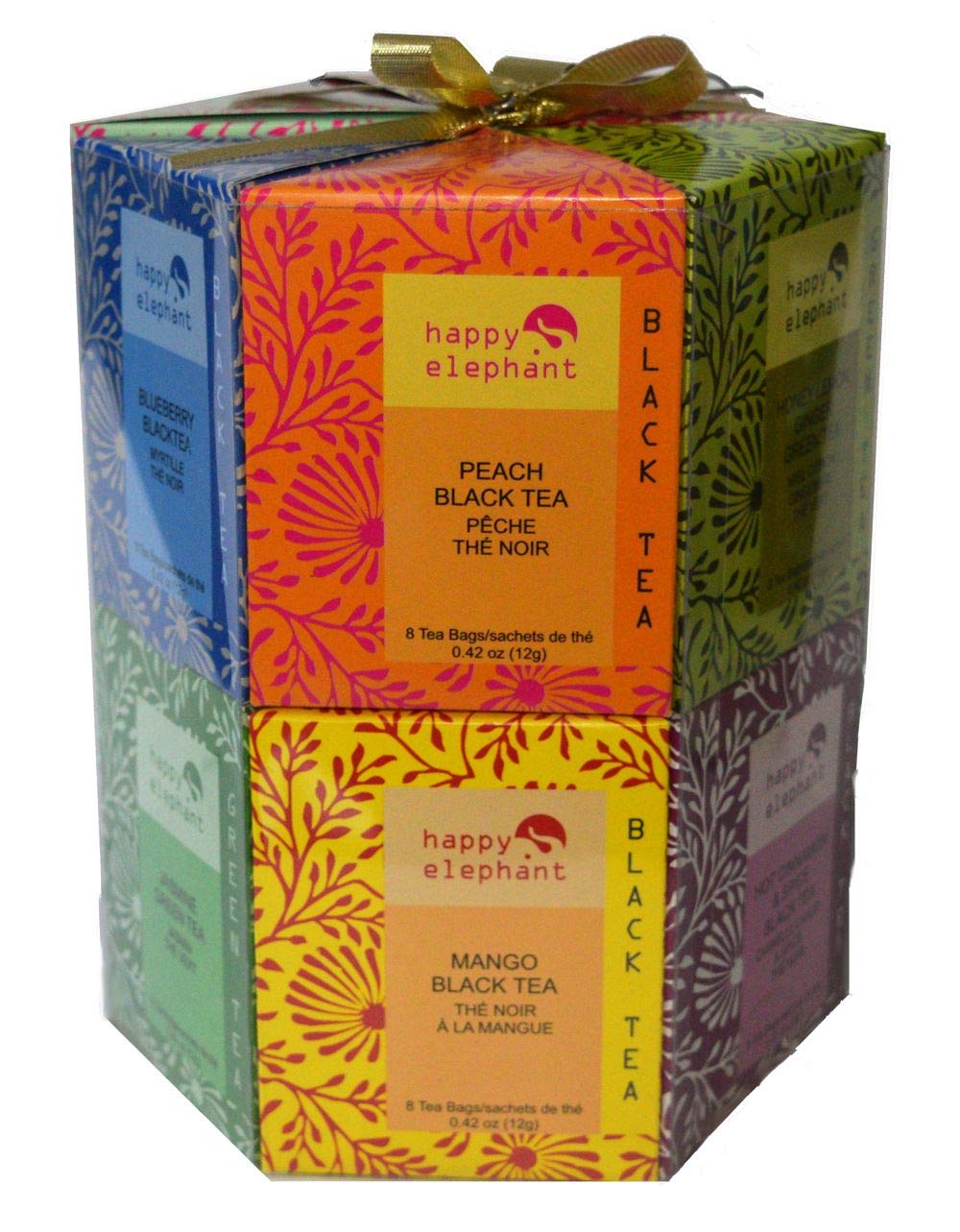 Happy Elephant Hexagon Gift Box 96 Tea Bag 12 Assorted Exotic Flavours