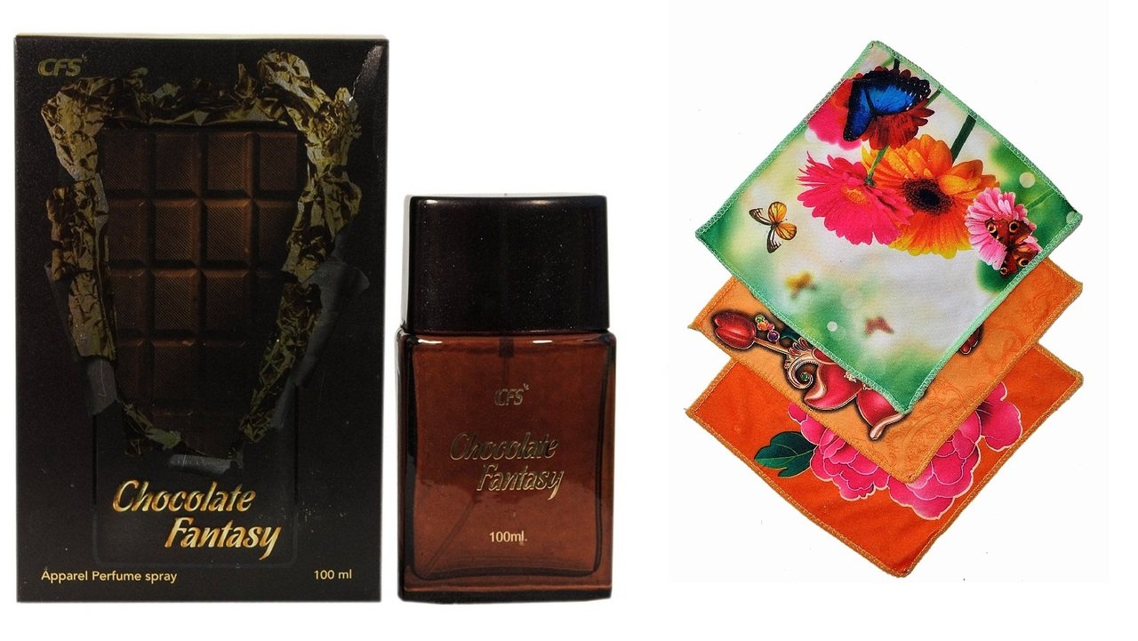 CFS Exotic Chocolate Fantasy Perfume 100ML + 3 Women Cotton Handkerchiefs