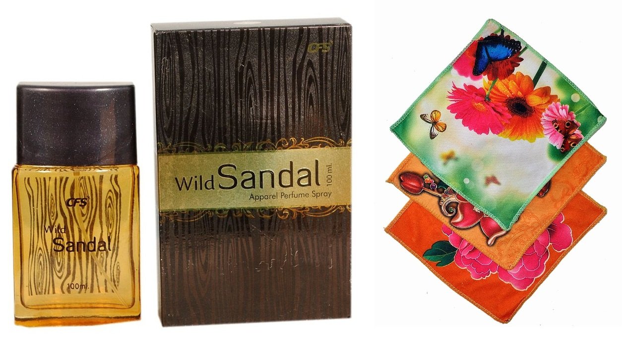 CFS Wild Sandal Perfume 100ML + 3 Women Cotton Handkerchiefs