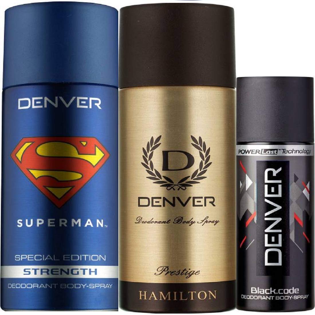 Denver Superman Strength Deo 150Ml + Deo Prestige 165ML+ Deo Black code Nan...