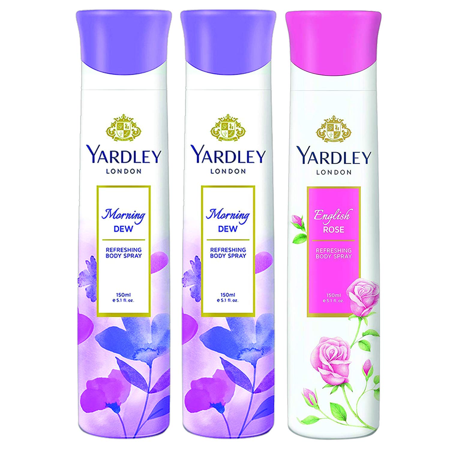 Yardley London - 2 Morning Dew and 1 English Rose Deo for Women 150ml (Pack...