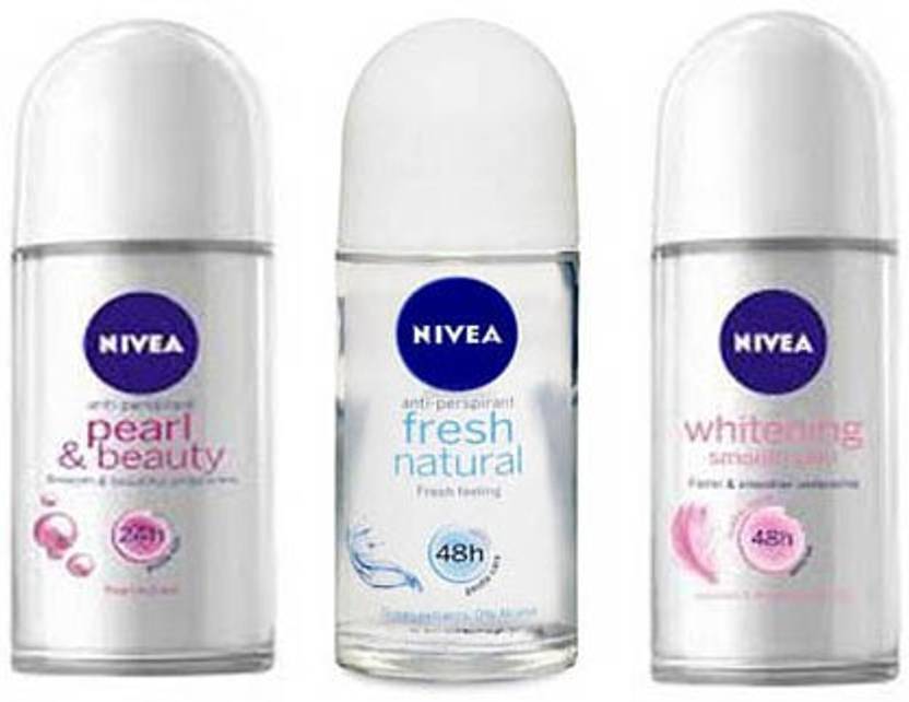 Nivea Pearl & beauty Pack of 3 Deodorant Roll-on - For Women (50 ml, Pack ...