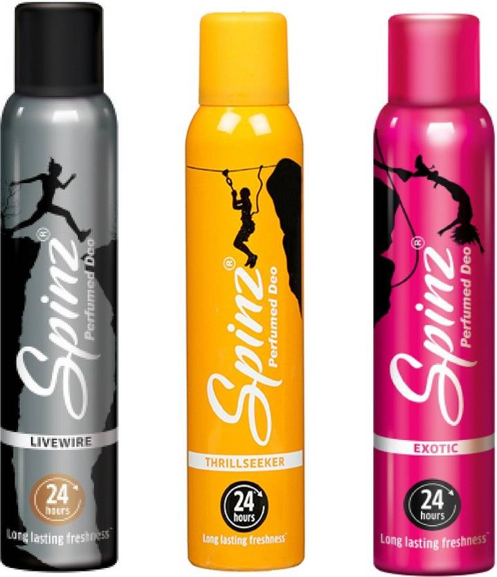 Spinz Livewire, Thrillseeker and Exotic Deodorant Body Spray Pack of 3 Comb...