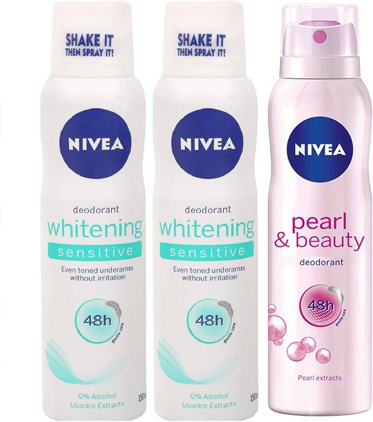 Nivea Whitening Sensitive & Pearl & Beauty Deodorant Combo - Pack of 3 Body...