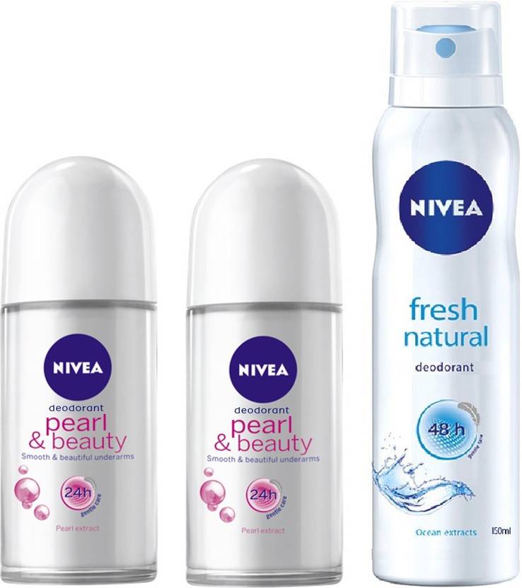 Nivea Pearl & Beauty Roll on 50 ml & Fresh Natural Deodorant 150 ml - Pack ...