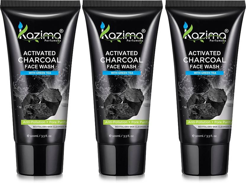 KAZIMA Activated CHARCOAL Face Wash (100 ML Pack 3) With Green Tea For Anti...