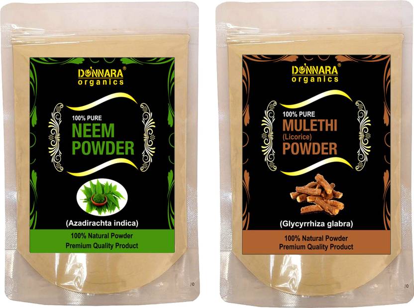Donnara Organics 100% Natural Neem Powder and Mulethi(Licorice) powder Comb...