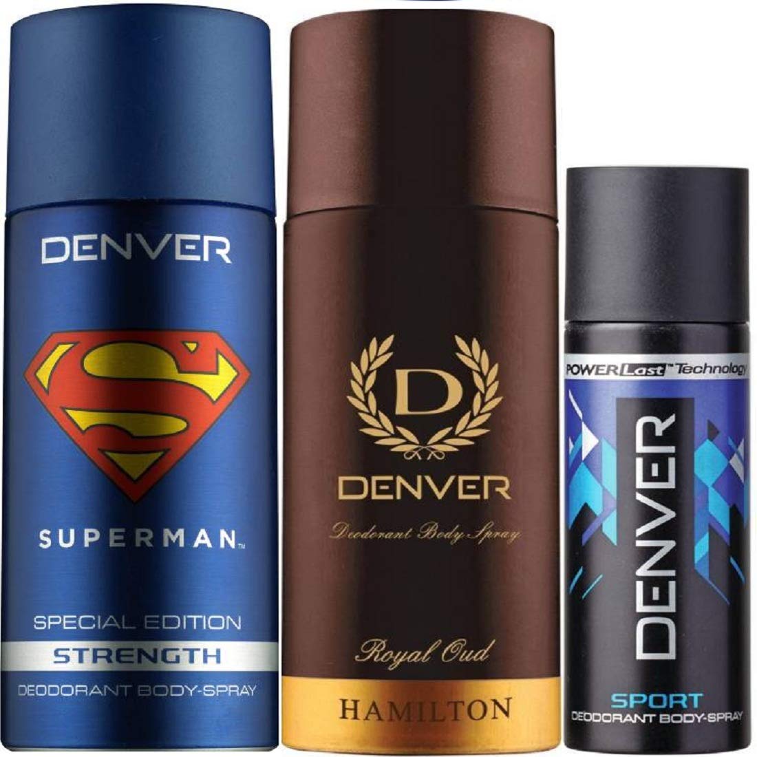 Denver Superman Strength Deo 150Ml + Deo Royal Oud 150ML+ Deo Blue Sports N...