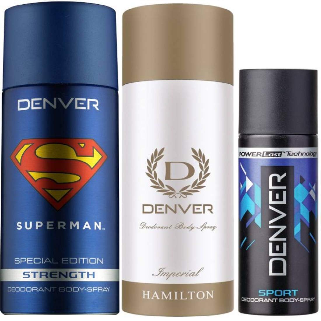 Denver Superman Strength Deo 150Ml + Deo Imperial 165ML+ Deo Blue Sports Na...
