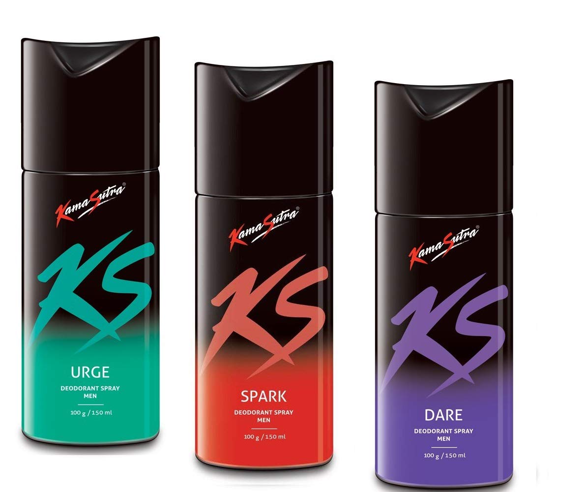 KamaSutra Deodorant Body Spray For Men, 150 ml Each - (Urge-Spark-Dare) Pac...
