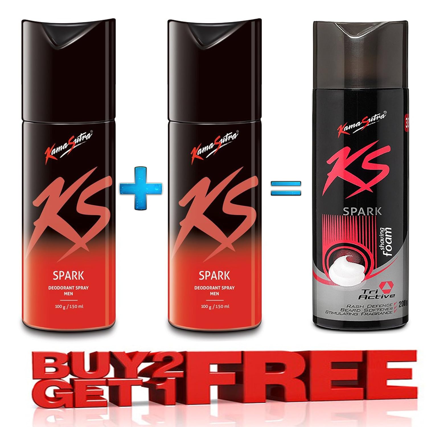 Kama Sutra Combo Pack of 2 Spark Deo (150 ml Each) with 1 Rush Deo-150 ml