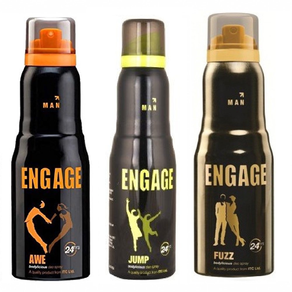 Engage Combo Pack Deo Sprays,( Awe and Jump ) with Free Fuzz Deo Spray