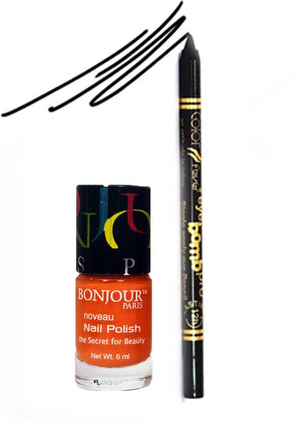 Bonjour Paris Color Fever 918 Black Pro Kajal+Orange Nail Polish (Set of 2...