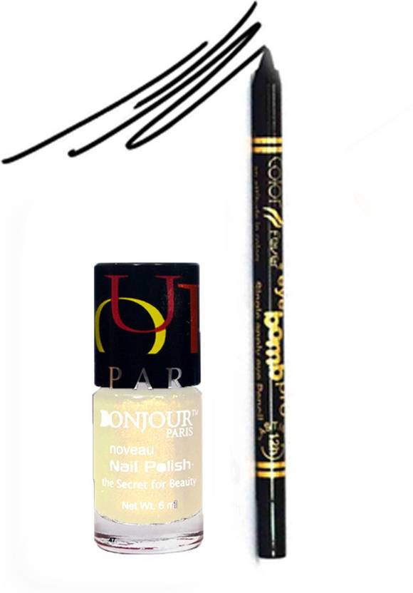 Bonjour Paris Color Fever 915 Black Pro Kajal+White Nail Polish (Set of 2)