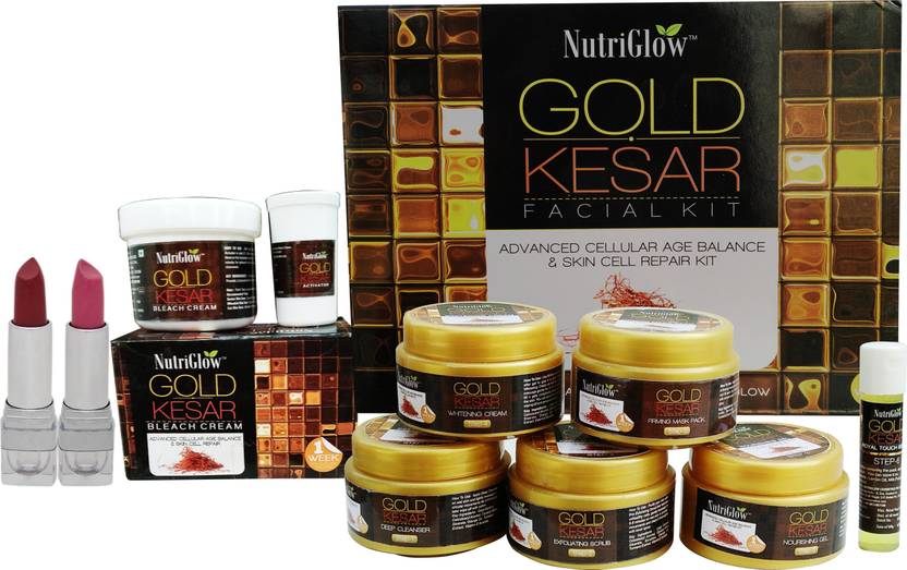 NutriGlow Gold Kesar Facial Kit (250+10)g with bleach and Makeup Kit (Set ...