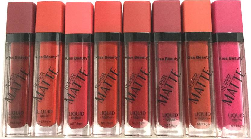 Kiss Beauty SUPER MATTE 24 HOURS STAY PACK OF 8 LIQUID LIPGLOSS (8 g, MULT...