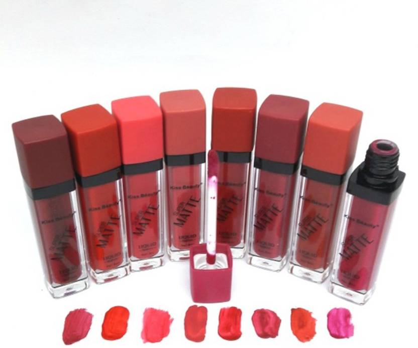 Kiss Beauty Super Matte Long lasting Lip Gloss Pack of 8 (64 g, Matte Girl...