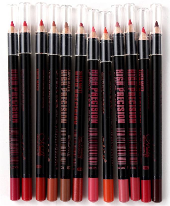 MN Super Matte High Precision Lip Pencil Pack of 12 (Multicolor)