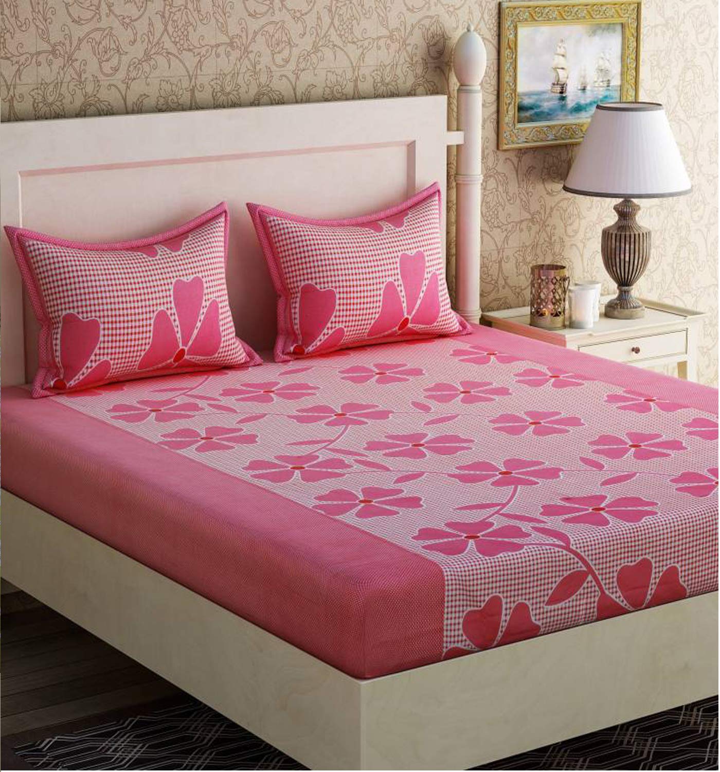 Home Pictures Polycotton Double BedSheet for Double Bed with 2 Pillow Cover...