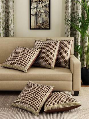 Zikrak Exim Self Design Cushions Cover (40 cm*40 cm, Brown)