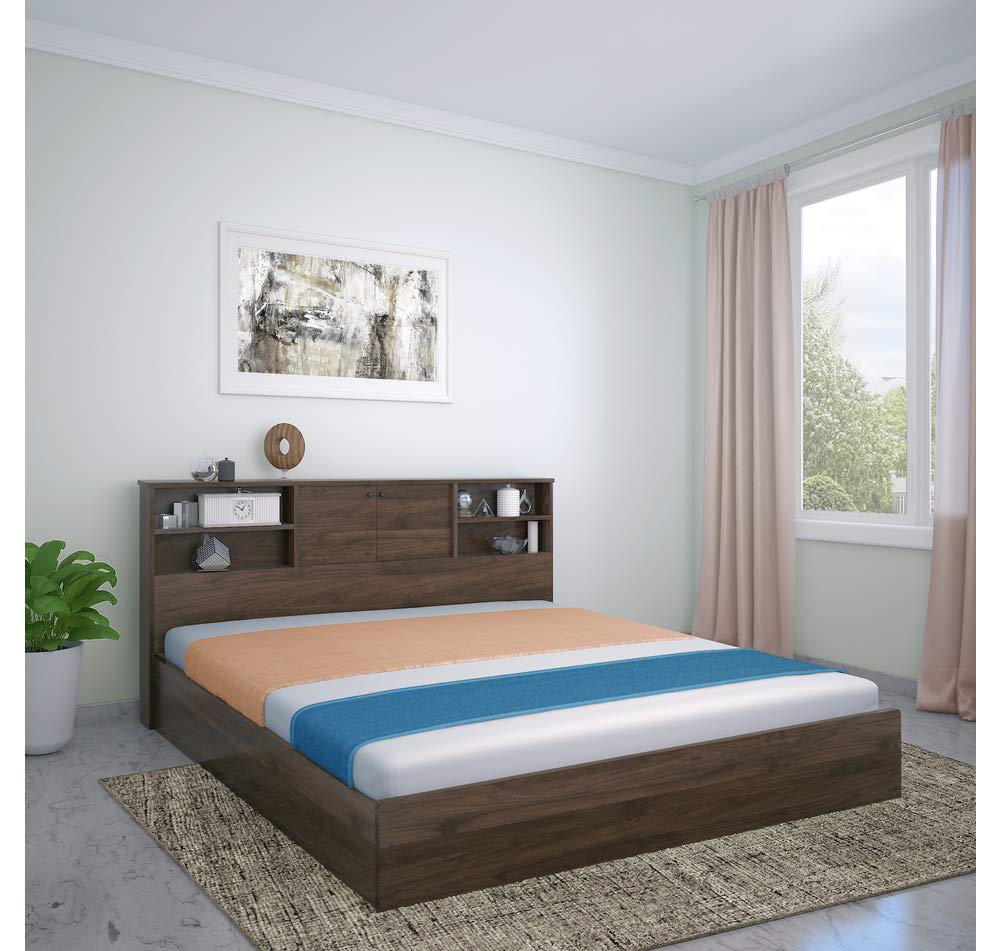 @home by Nilkamal Gunner King Size Bed with Box & Headboard Storage (Wenge)