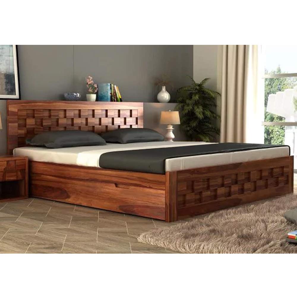 True Furniture Sheesham Wood King Size Storage Bed for Bedroom | Natrual Fi...