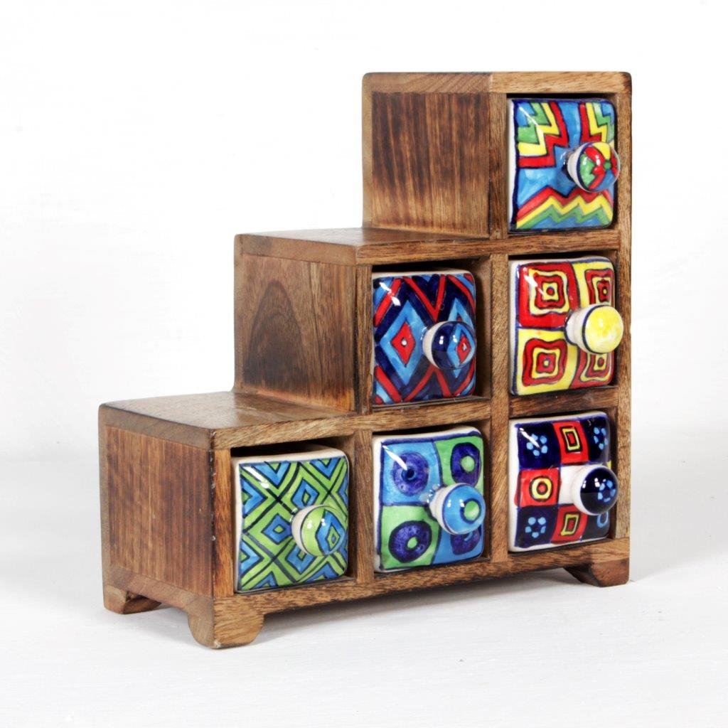 Klaxon Statice Side Table/Wooden Three Drawer Storage Cabinet with Two Fabr...