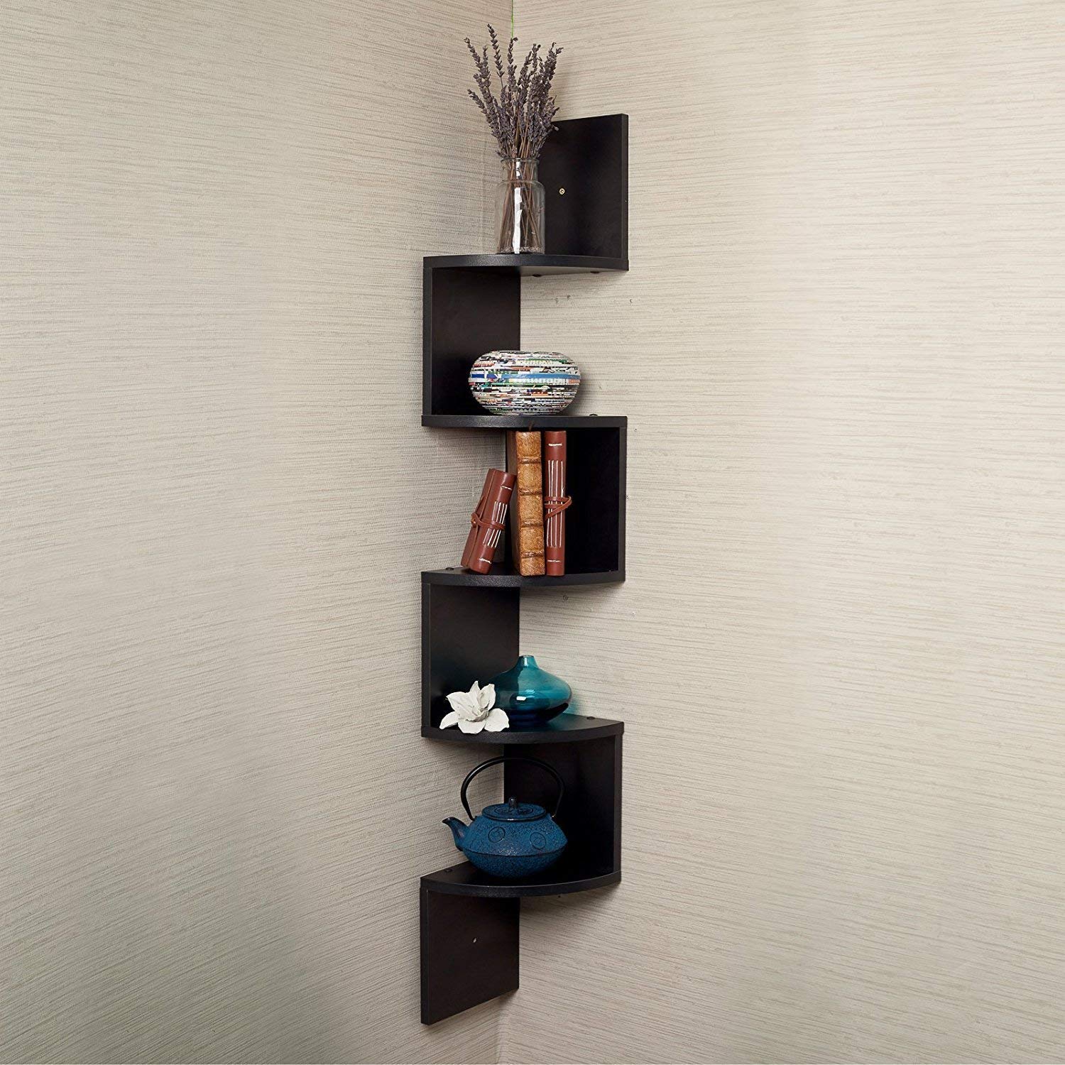 RjKart Furniture Corner Mount Wall Shelves Zigzag Shape Rack Purely Laminat...