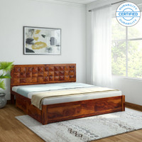 Induscraft Antilia Drawer Sheesham Solid Wood Queen Bed With Storage(Finish...