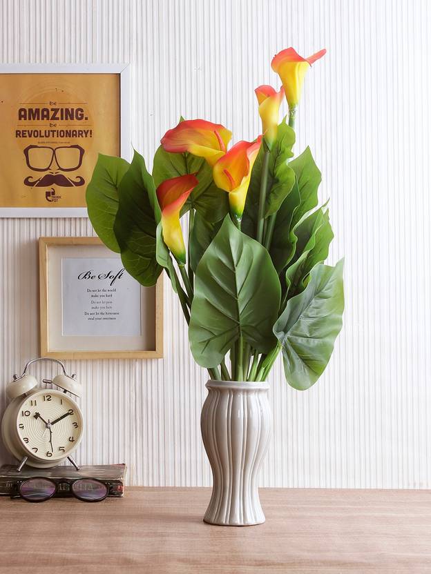 Fourwalls Artificial Real Touch Calla Lily Plant without pot (60 cm Tall, O...