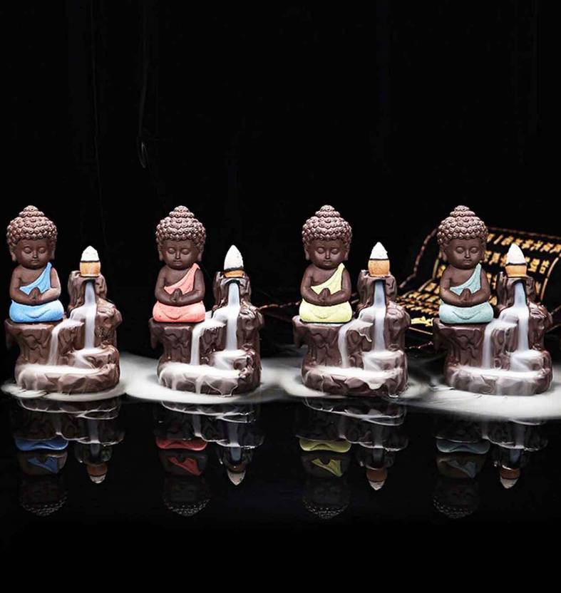 Craft Junction Handcrafted Set of 4 Meditating Little baby Monk Buddha Smok...