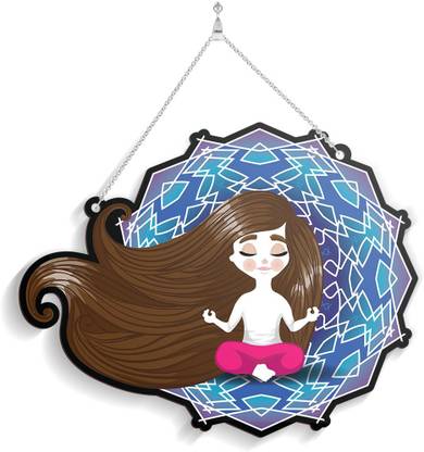 100yellow Wooden Long Hairy Yoga Girl Plaque Name Plate for Home & Office N...