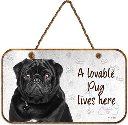 ezyPRNT Wooden A lovable Pug Lives Here Dog Wooden Wall Hanging Plaque Name...