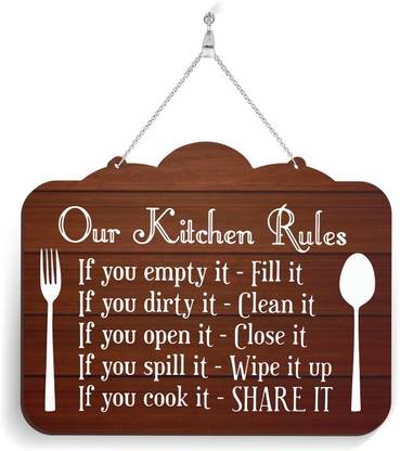 100yellow Wood Our Kitchen Rules Wall Door Hanging Name Plate For Home & Of...