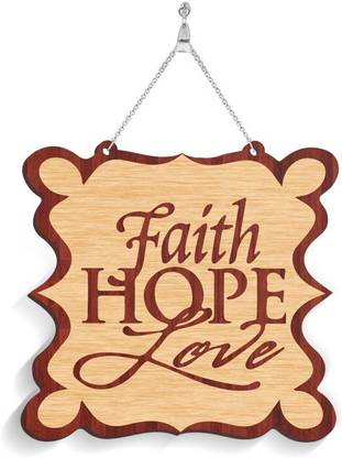 100yellow Wood Faith Hope Love Wall Door Hanging Name Plate For Home & Offi...