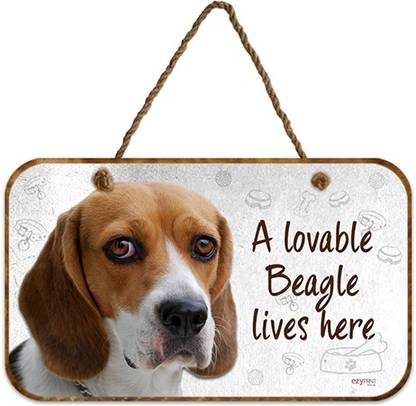ezyPRNT Wooden A lovable Beagle Lives Here Dog Wooden Wall Hanging Plaque N...