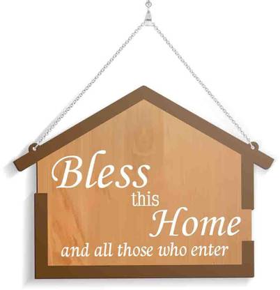100yellow Wooden Bless this home Name Plate (Multicolor)