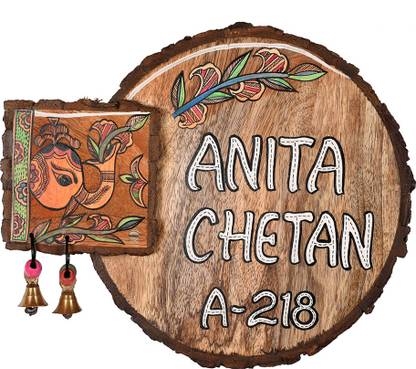 AAKRITI ART CREATIONS Wooden WALL DECOR HAND-PAINTED WOODEN Name Plate (Br...