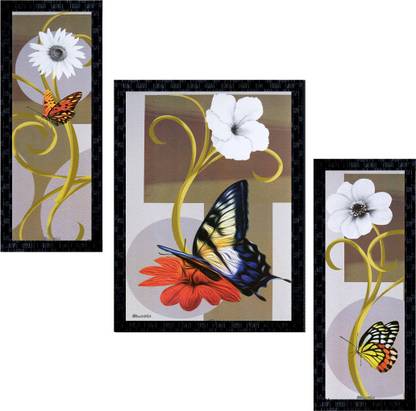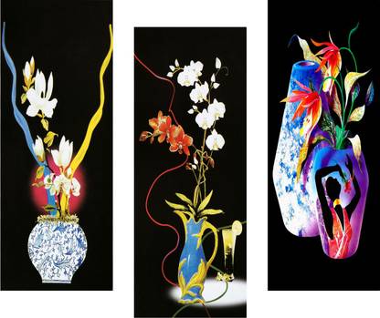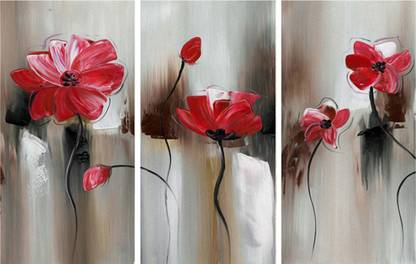 Janki Online Set of 3 Flowers Modern Art Glass Framed Wall Painting For Hom...