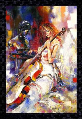 Janki Online Modern Art Lady Glass Wall Paintings with Frame for home decor...