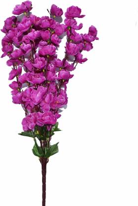 Fourwalls Artificial Peach Blossom Flower Bunch (60 cm Tall, 9 Branches, Pu...